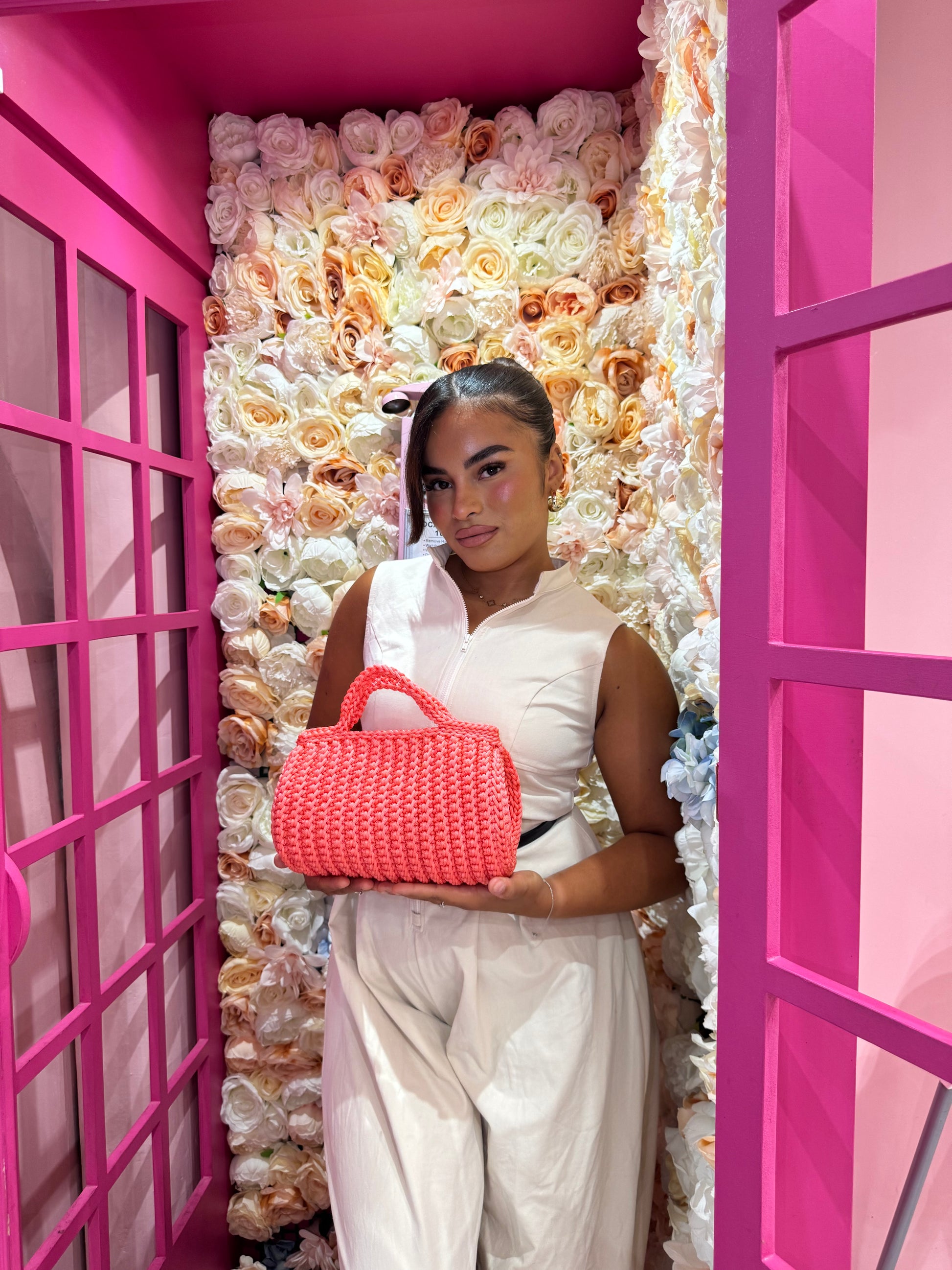 Le Wavy Pink est l’accessoire qui attire tous les regards. Conçu en maille crochetée avec une finition artisanale, il allie modernité et savoir-faire créateur. Sa teinte rose vibrante donne une touche audacieuse et lumineuse à toutes vos tenues, de jour comme de nuit.